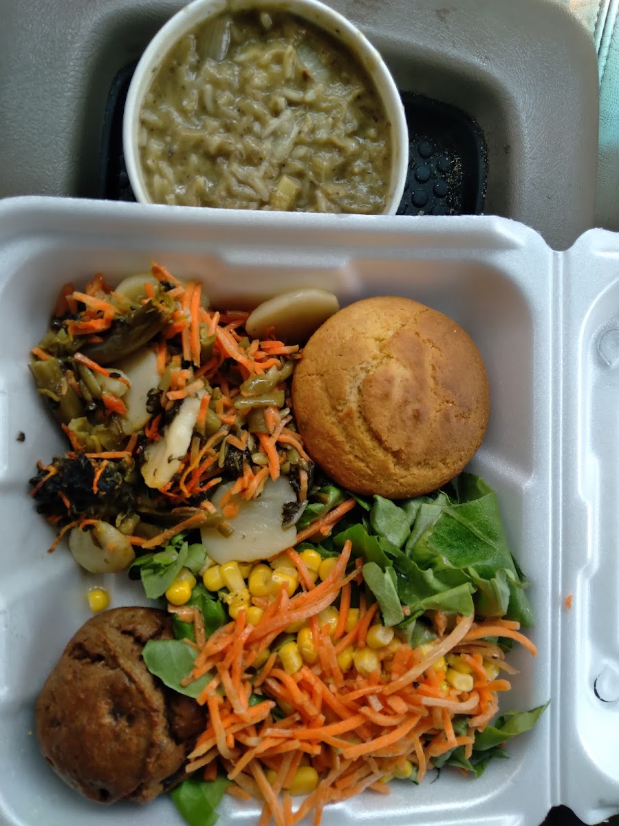Service here doesn’t follow the usual server-to-table format. You order at the counter, find a seat, and your food is brought out by volunteers or staff who often stop to chat. Reviews from locals often mention how refreshing it is to eat without feeling rushed or judged. On Google and Yelp, many diners describe the atmosphere as welcoming, inclusive, and uplifting, words that come up again and again in community feedback.